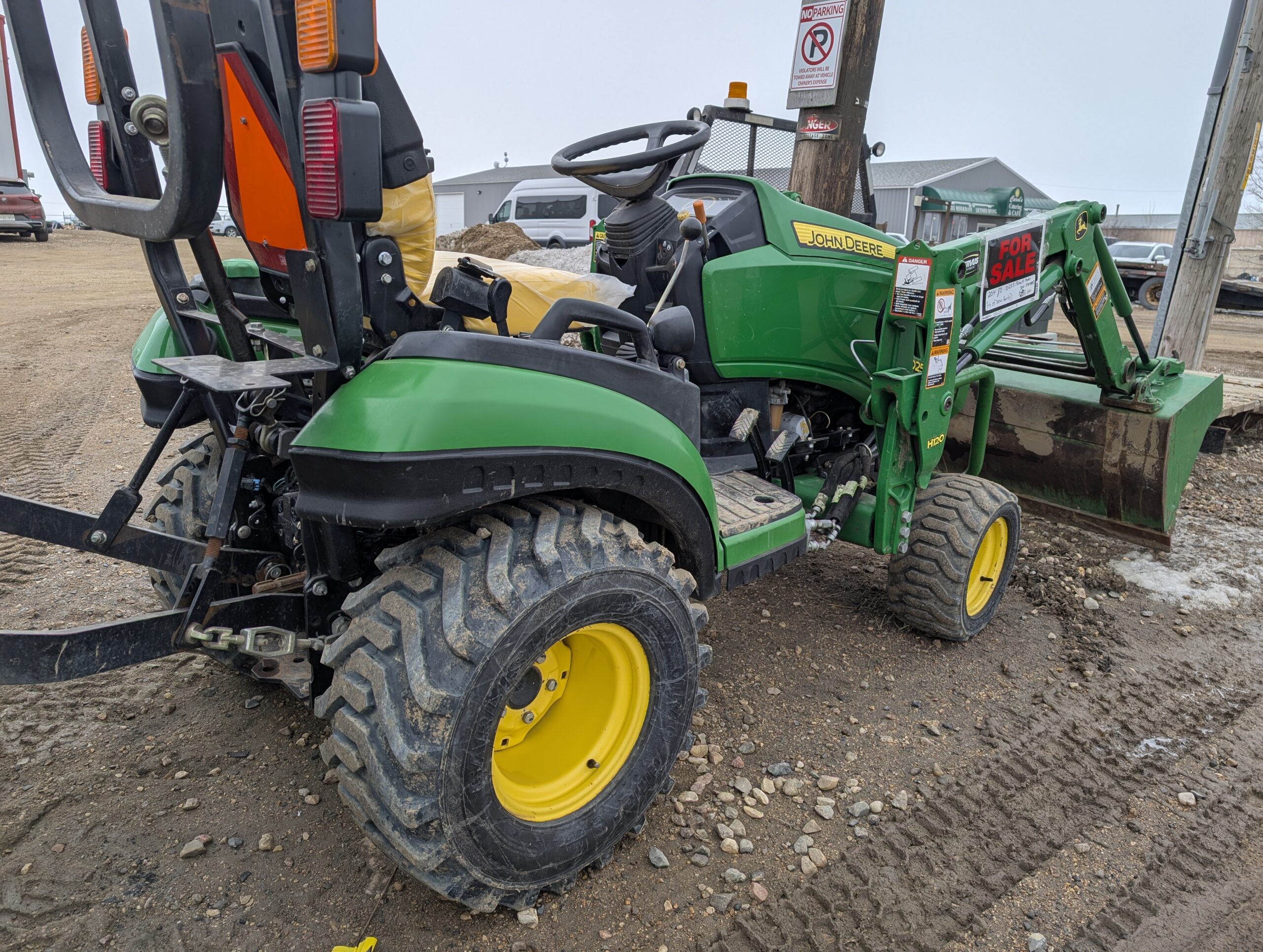 25HP compact tractor and loader, in as new condition, front end loader and standard bucket.
